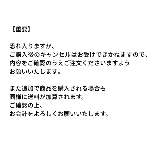ご購入後のキャンセルはお受けできかねますので、内容をご確認のうえご注文くださいますようお願いいたします。