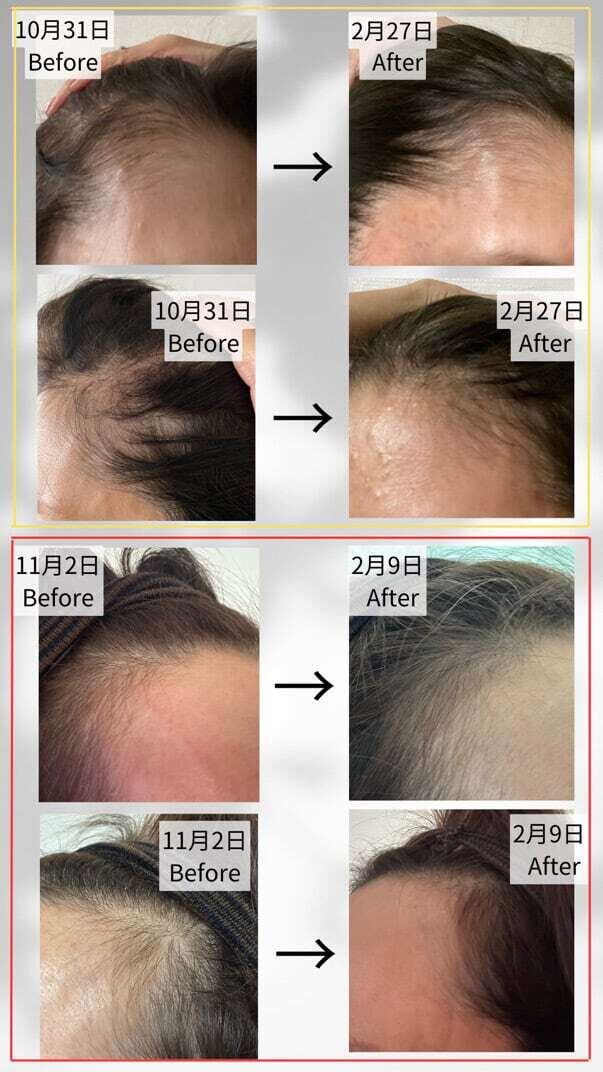 ミノキシジルの3倍の効果を持ちデメリットが一切ないとされる近年見つかった素晴らしい成分です。それらが高配合なので画像のように結果が出てる方が多数です。